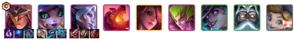 阵容组成:韦鲁斯、内瑟斯、斯莫德、黛安娜、塔姆、希瓦娜、慎、阿卡丽、泽拉斯