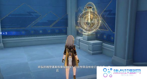 操作:来到地图位置后可以看到一个圆盘形的雕塑,提示可以攻击,点击攻击打碎它即可。