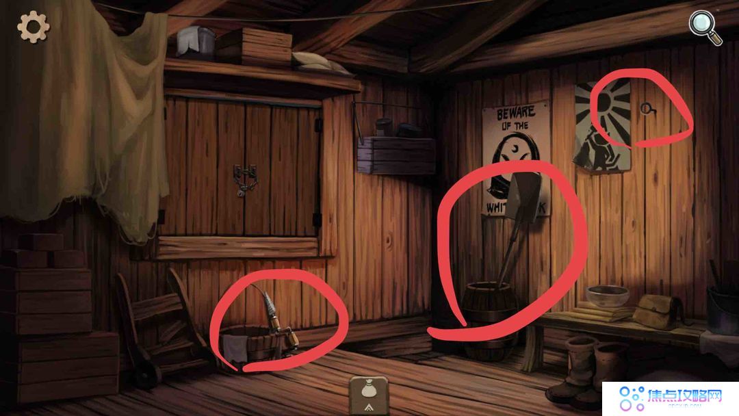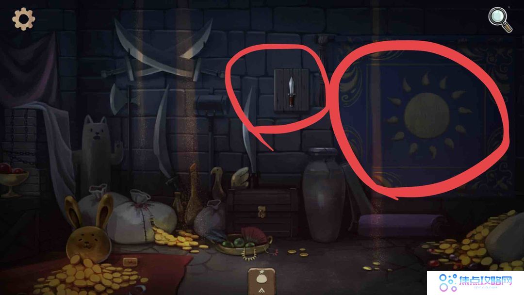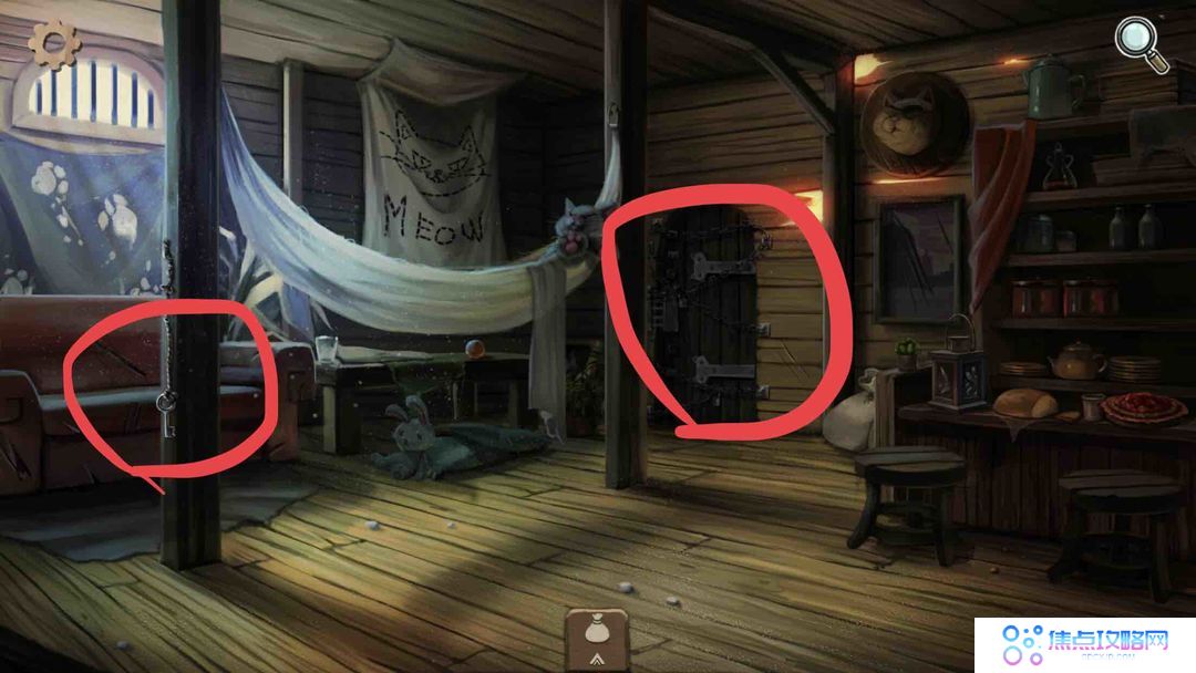 取下画,用小刀割断绳子,点击几次绳子打开门