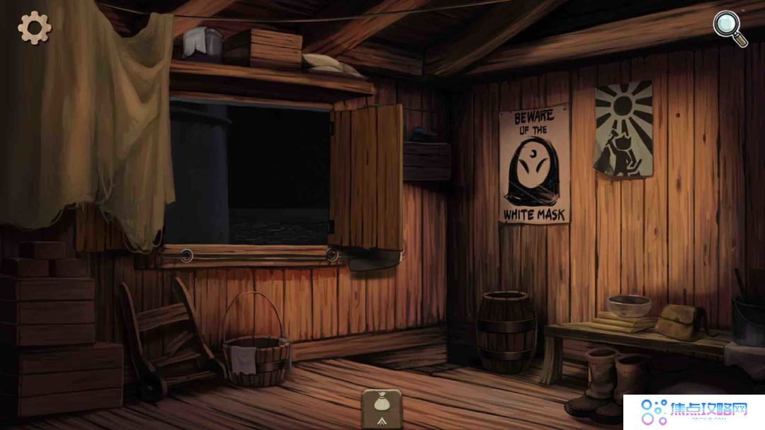 先拿到小刀,然后割开帘子,发现被木板钉住的通道