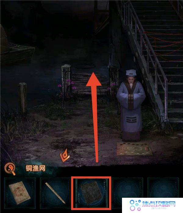 2、解谜如下图所示获得渔网,去河边铺上过去捡铜钱。