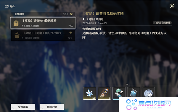 奖励:星声*50,特级共鸣促剂*2,中级复苏吸雾*2,中级能量袋*2,贝币*10000