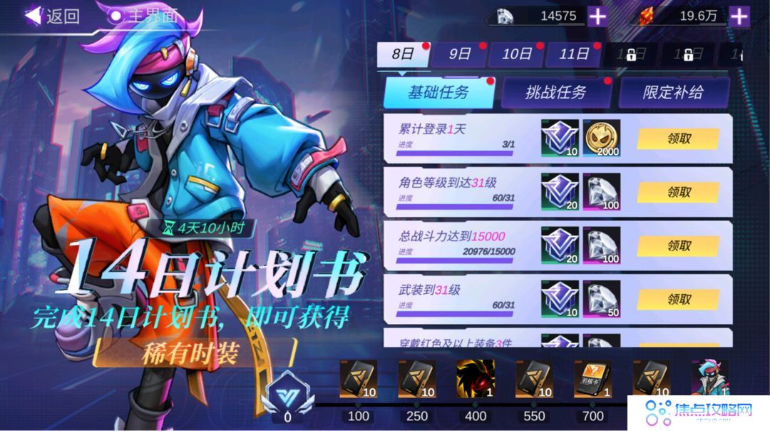 挑战主线章节,获取挑战经验,领取挑战计划奖励。可获得金币、钻石、作战芯片、N极管、武装芯片、机核芯片,还有超燃辅助机!,多种奖励等你来拿!