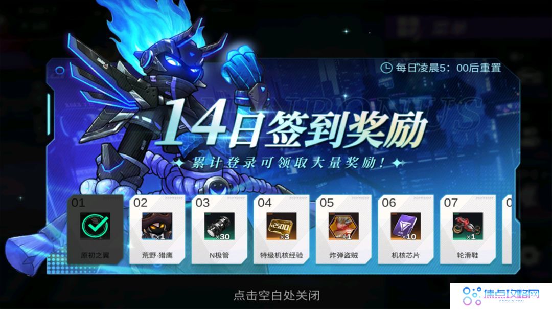 签到14天得武装皮肤,戒指,翅膀,钻石以及大量材料等。首日送翅膀(原初之翼),次日送武装皮肤(荒野·猎鹰),第五日送橙色机核(炸弹盗贼),第七日送载具轮滑鞋,第八日送火1纪念戒和大量材料钻石等你来拿!