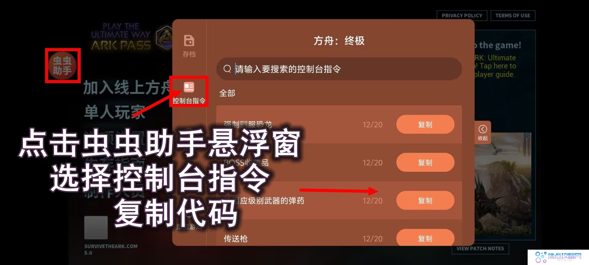 三、点击虫虫助手悬浮窗选择控制台指令复制代码。
