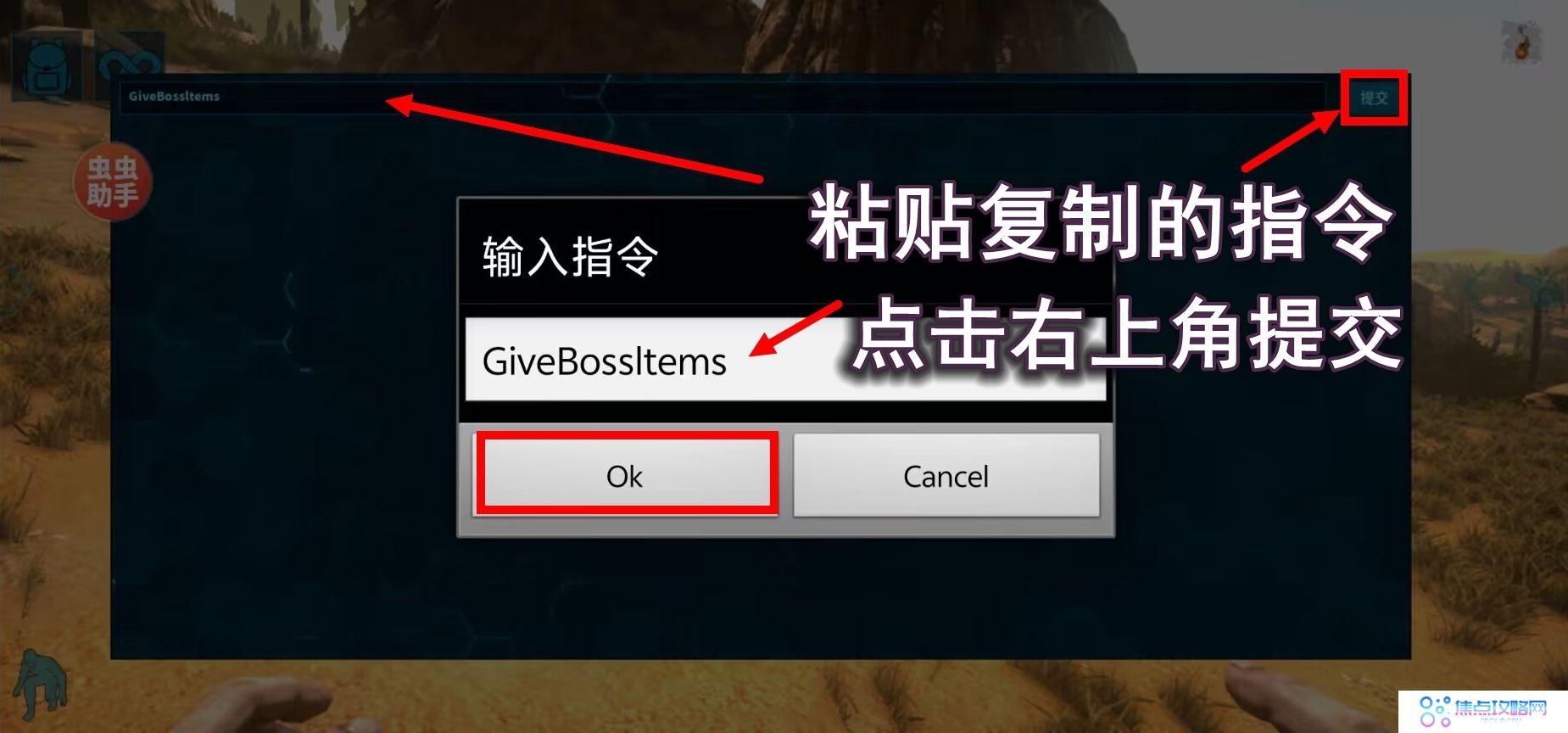六、点击顶部【输入框】粘贴【已复制的指令码】点击右上角【提交】。