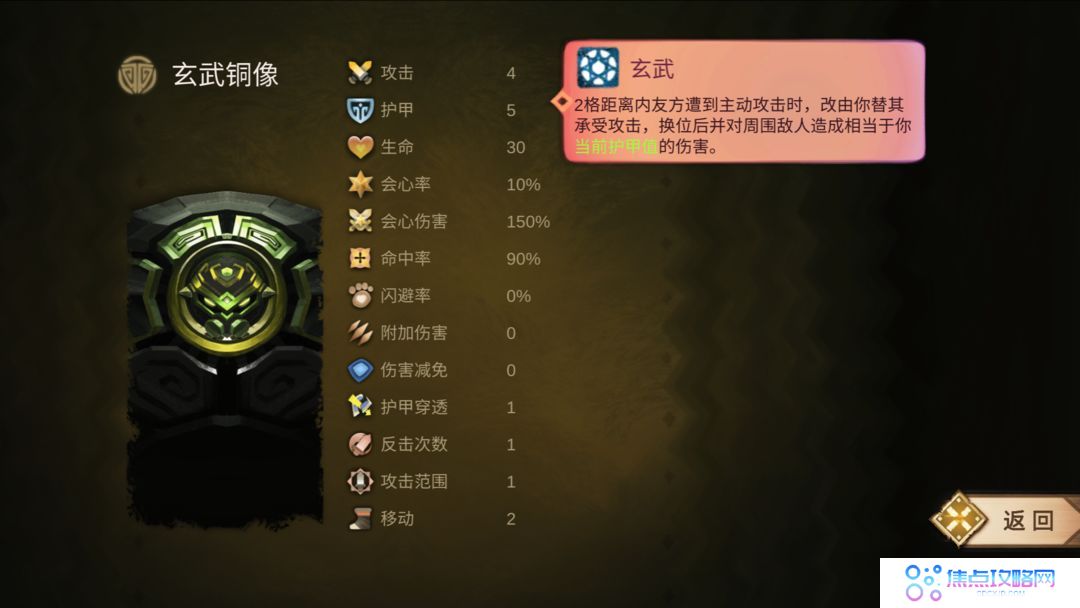 玄武铜像由甲卫+猎手组合而成,厚重的龟甲可以替身边的队友抵挡伤害,并进行反击。