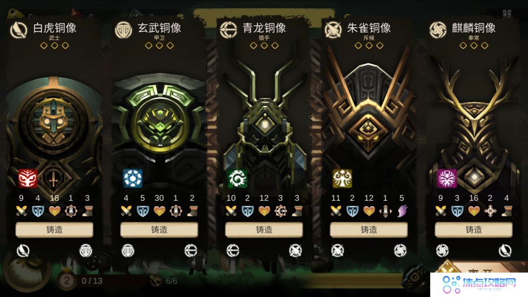 白虎铜像由武士+甲卫组合而成,继承了青铜武士使用攻势的特点,并且增加了高达3点的攻击距离,可以更安全的消灭敌人。