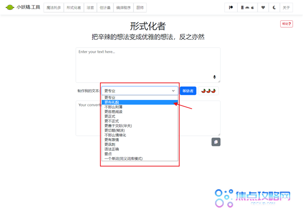 6、除了转换成更有礼貌的话,也可以选择更专业等选项,用户可以自行尝试。