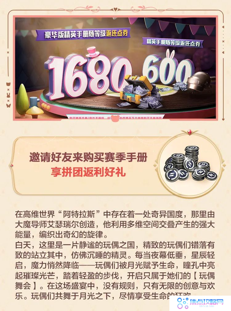 已知SS29赛季手册将包含【玩偶舞会】系列套装,该系列皮肤于9月24日5点05分上线。该系列皮肤以玩偶舞会为主题,设计可爱且充满节日氛围。