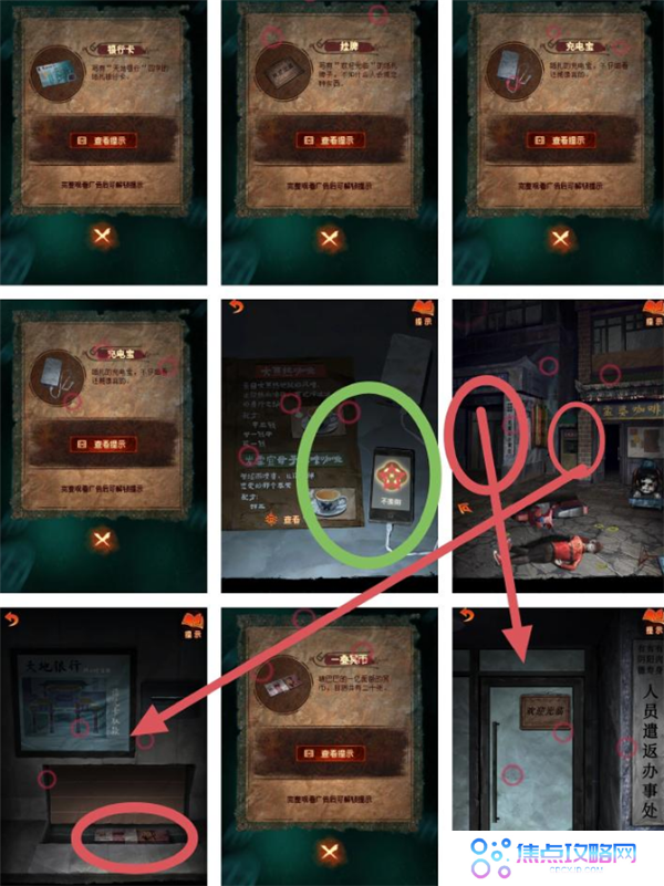 咖啡馆大门剪纸和马面雕像吊饰位置是解开牛头雕像吊饰的关键。