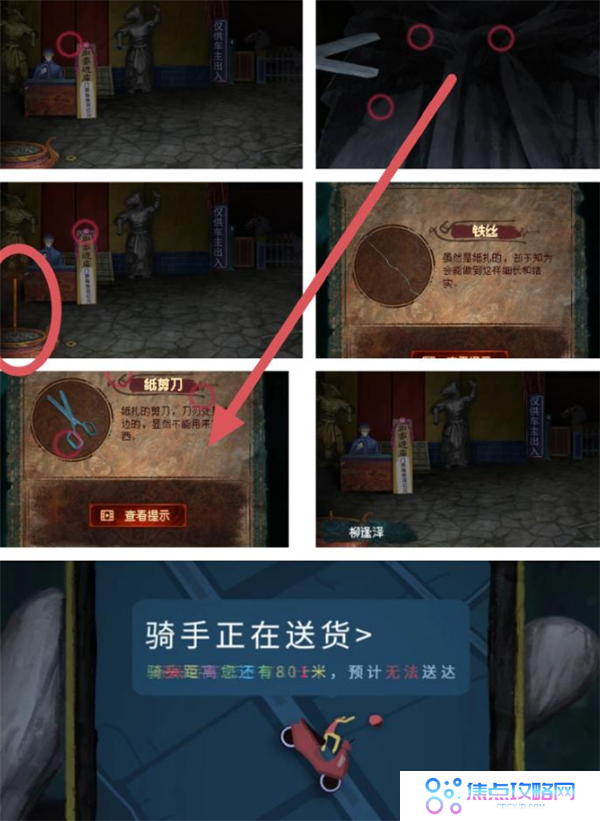 通过线索调整牛头雕像吊饰后,获取粗香和纸剪刀。